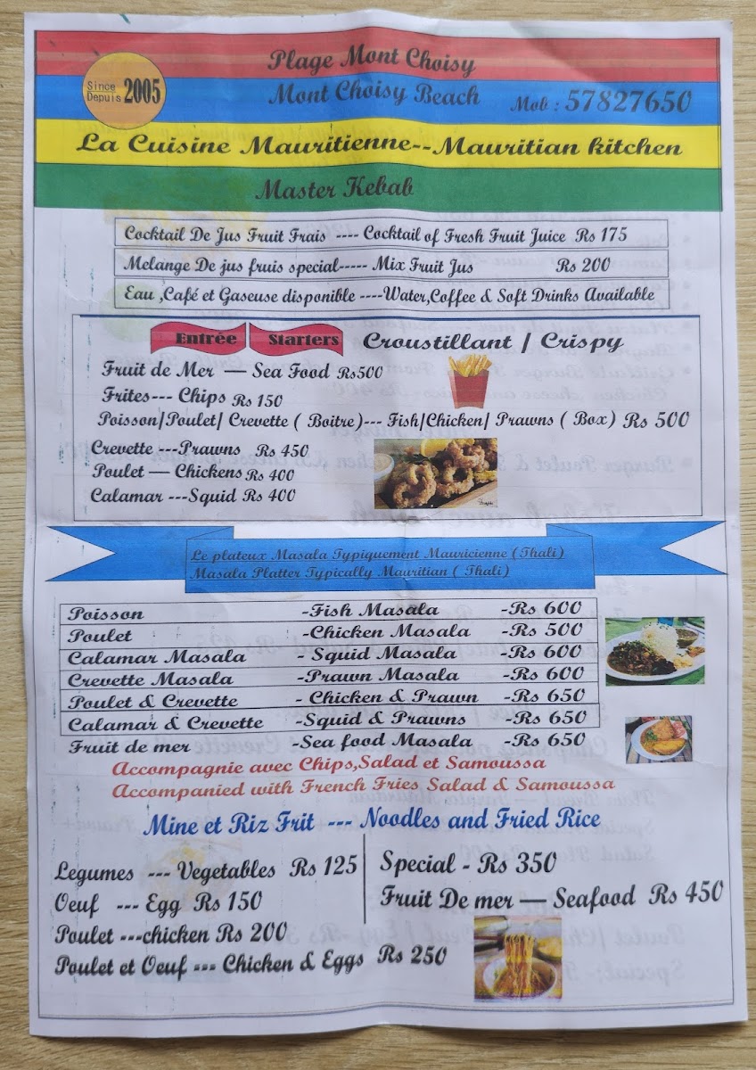 Introducing Master Kebab, a culinary gem located in Grand Baie, Mauritius, where traditional flavors meet beachside charm. This delightful eatery offers an inviting buffet experience, ideal for both locals and tourists alike. With a menu that highlights the freshest local ingredients, the standout dishes include crispy shrimp—a must-try for any seafood lover. Guests rave about the tempting samosas and delicious fried noodles, all served alongside friendly, unobtrusive service.